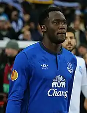 Le , Lukaku s'engage pour cinq saisons avec l'Everton FC[35] pour 35 millions d'euros, un record dans l'histoire d'Everton[36]. Le , il marque son premier triplé sous le maillot d'Everton lors du seizième de finale aller de Ligue Europa face aux Young Boys Berne (1-4)[37]. Lors du match retour à Goodison Park, il inscrit un doublé, marquant ainsi cinq buts en deux confrontations. Lukaku termine co-meilleur buteur de la C3 avec huit réalisations, et ce, malgré l'élimination des Toffees dès les huitièmes de finale.