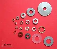 Aussi appelées « rondelles à crans » ou « rondelles éventail ». Le freinage est amélioré par un grand nombre de dents incrustées dans les pièces assemblées. L'incrustation permet également un meilleur contact électrique.