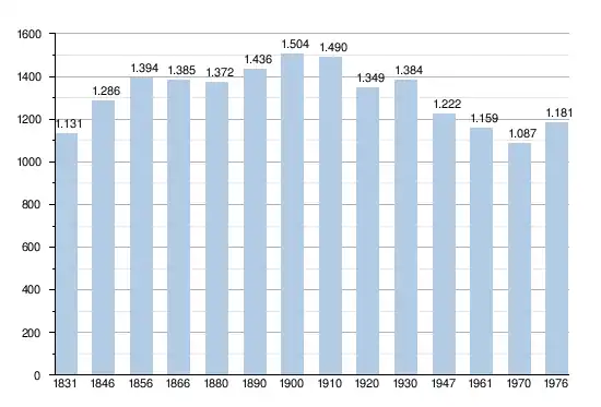 - Sources : INS, Rem. : 1831 jusqu'en 1970 = recensements, 1976 = nombre d'habitants au 31 décembre.