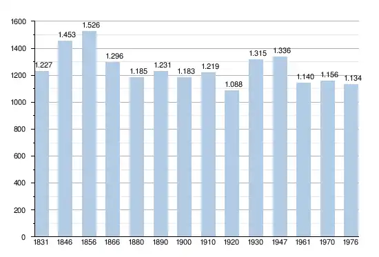 - Sources : INS, Rem. : 1831 jusqu'en 1970 = recensements, 1976 = nombre d'habitants au 31 décembre.