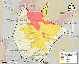 Le retrait-gonflement des sols argileux est susceptible d'engendrer des dommages importants aux bâtiments en cas d’alternance de périodes de sécheresse et de pluie. 52 % de la superficie communale est en aléa moyen ou fort (75,2 % au niveau départemental et 48,5 % au niveau national). Sur les 703 bâtiments dénombrés sur la commune en 2019, 698 sont en aléa moyen ou fort, soit 99 %, à comparer aux 94 % au niveau départemental et 54 % au niveau national. Une cartographie de l'exposition du territoire national au retrait gonflement des sols argileux est disponible sur le site du BRGM[32],[Carte 3].