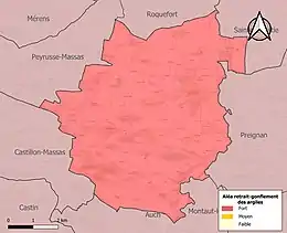 Le retrait-gonflement des sols argileux est susceptible d'engendrer des dommages importants aux bâtiments en cas d’alternance de périodes de sécheresse et de pluie. La totalité de la commune est en aléa moyen ou fort (94,5 % au niveau départemental et 48,5 % au niveau national). Sur les 279 bâtiments dénombrés sur la commune en 2019, 279 sont en aléa moyen ou fort, soit 100 %, à comparer aux 93 % au niveau départemental et 54 % au niveau national. Une cartographie de l'exposition du territoire national au retrait gonflement des sols argileux est disponible sur le site du BRGM[26],[Carte 3].
