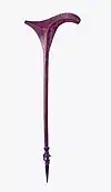 Il était utilisé pour dévier les traits de l'ennemi. Il possède une tête à forme de large bec ou en forme de boomerang ou de serpe[1] qui est séparée par une arête centrale bien marquée et possède un ergot à l’arrière. Le manche est souvent terminé par une sculpture anthropomorphe et le tout est fait dans du bois très dur[2]. Il était aussi utilisé lors de danses guerrières et mesure plus ou moins 150 cm[3]. Il ne doit pas être confondu avec le qauata qui lui ne possède pas d'ergot et ressemble à une feuille[4].