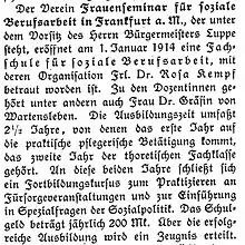 Le 24 janvier 1917, Rosa Kempf participe à la « Première Conférence des écoles sociales pour femmes d'Allemagne », qui a lieu à Berlin à l'École sociale pour femmes. Elle y recommande, entre autres, que les écoles concluent elles-mêmes les premiers contrats de travail de leurs étudiants[1].