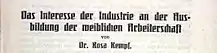 - (de) Das Interesse der Industrie an der Ausbildung der weiblichen Arbeiterschaft, Gautzsch bei Leipzig, Felix Dietrich,