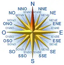 À la Renaissance, la rose des vents italienne est adoptée par les marins de la Méditerranée. Sur beaucoup de portulans de l'époque apparaît une rose des vents avec les initiales italiennes T, G, L, S, O, L, P et M. D’autres peuples à tradition maritime possèdent également des noms spécifiques pour les directions intermédiaires telles que le nord-est. Ainsi, en breton, les huit directions s'appellent (à partir du nord, dans le sens des aiguilles d'une montre) : norzh (ou sterenn), biz, reter, gevred, su, mervent, kornaoueg, gwalarn.