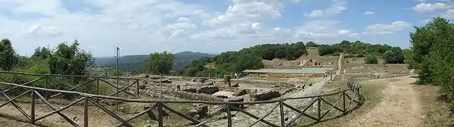 Sur les pentes de la colline Nord a été découvert un complexe thermal d'époque romaine. Ce complexe est caractérisé par des maçonneries qui présentent la technique de l’opus reticulatum avec plinthe et la base du mur en brique, tandis que les fondations sont en opus caementicium.