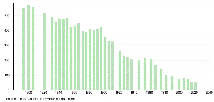 - Population municipale légale en vigueur au 1er janvier 2024, millésimée 2021, définie dans les limites territoriales en vigueur au 1er janvier 2023, date de référence statistique : 1er janvier 2021.