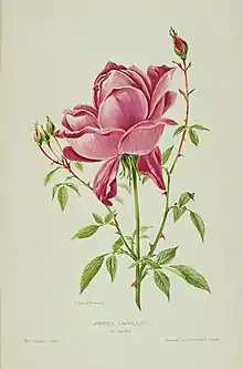 - Rosa ×bourbonia (Rosa ×damascena 'Semperflorens' × 'Old Blush') aux fleurs rose carmin foncé.