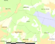 La commune est située entre la montagne de Liancourt et les marais de Sacy-le-Grand, dont une partie s'étend sur le territoire[2]. Le hameau d'Hardencourt se trouve près du Mont Berthault[a 2]. Les montagnes du Hêtre, du Moulin et de Berthaut occupent le sud du terroir. Celui-ci s'étend entre 32 mètres dans les marais de Sacy-le-Grand et culmine à 139 mètres au-dessus du niveau de la mer au sommet de la montagne de Rosoy, partie de la montagne de Liancourt comprise sur le territoire[3]. On relève les altitudes suivantes : 44 mètres sur la D 59, à la limite avec Labruyère, 68 mètres à la limite avec Verderonne, sur le même axe routier et au hameau d'Hardencourt, 113 mètres à 121 mètres sur la montagne de Berthaut, ou montagne de Verderonne, appelée également montagne du Hêtre à son extrémité nord, du Moulin près d'Hardencourt et 136 mètres au carrefour de la Lune, en limite de Bailleval et de Labruyère, où la D 137 rencontre l'ancien chemin stratégique de Villers-Saint-Paul à Catenoy[a 2].