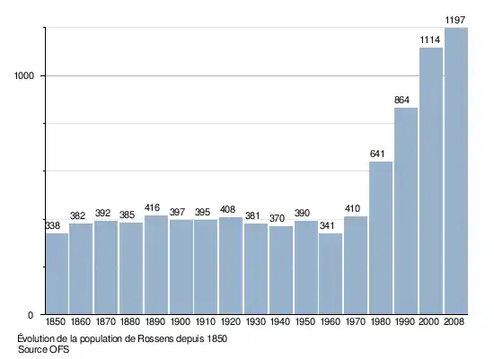 Selon l'Office fédéral de la statistique, Rossens compte 1 335 habitants en 2022[2]. Sa densité de population atteint 262 hab./km2.