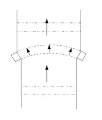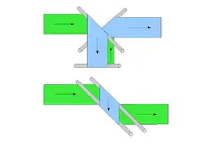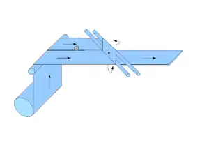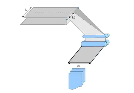 - Les barres de retournement parallèles servent à conduire la moitié de la bande de papier au-dessus ou en dessous de l'autre moitié. La semi-bande déplacée n'est pas retournée, mais transportée parallèlement par rapport au sens de marche initial (le même côté est au-dessus, comme auparavant).