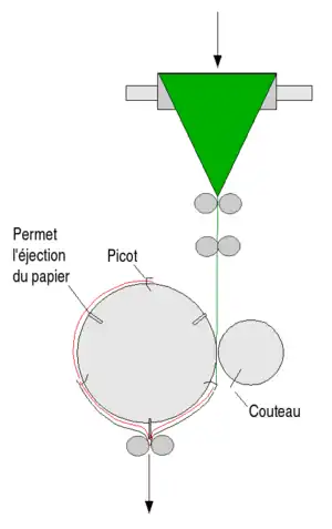 Note : Dans le cas d'une rotative avec sécheur, il est parfois nécessaire de réhumidifier ou de siliconer le papier pour l'assouplir et éviter qu'il ne casse.