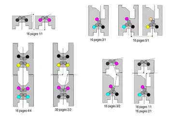 Il existe de nombreuses façon d'imprimer les différentes couleurs sur un journal. Les rotatives de presse se veulent les plus flexibles possibles afin de pouvoir imprimer de nombreux types de journaux. La répartition des couleurs dans le journal ne dépend de la machine mais il existe plusieurs configurations possibles sur chaque machine afin d'adapter le nombre de couleurs et la pagination à la mise en page voulue.