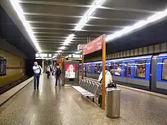 Elle dispose d'un quai central encadré par les deux voies de la ligne U1. Ces installations sont également desservies par les rames de renfort de la ligne U7 du métro de Munich[3],[4].