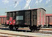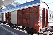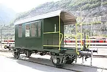 M6 "67587" | 40 85 94 25 050-3 | 1912 | marchandises, wagon plat à ranchers | Actuellement exposé au Musée Suisse des Transports |