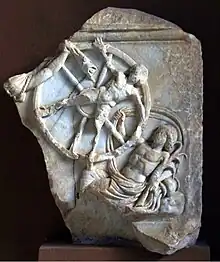 La roue, utilisée comme instrument de torture dans la Grèce antique, figure dans la comédie d'Aristophane Ploutos, écrite en 388 av. J.-C. : « Tu vas dans l'instant comparaître dans le forum : c'est là que, vivement fustigé sur la roue, tu seras contraint d'avouer tes crimes[1]. ». Aristophane parle également de la roue dans la comédie La Paix : au vers 453, Trygée dit « ...qu'il soit étendu sur la roue et lacéré de coups de fouet. » ce qui laisse à penser que la roue n'était pas utilisée chez les Athéniens pour rompre les membres des condamnés, mais pour les fouetter.