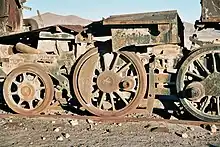 On parle généralement dans la profession de roues bandagées, constituées d'un centre généralement en acier et d'un bandage, toujours en acier, fretté sur le centre et bloqué par une agrafe.