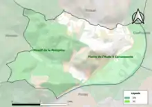 L’inventaire des zones naturelles d'intérêt écologique, faunistique et floristique (ZNIEFF) a pour objectif de réaliser une couverture des zones les plus intéressantes sur le plan écologique, essentiellement dans la perspective d’améliorer la connaissance du patrimoine naturel national et de fournir aux différents décideurs un outil d’aide à la prise en compte de l’environnement dans l’aménagement du territoire. Deux ZNIEFF de type 1[Note 2] sont recensées sur la commune[15] : le « massif de la Malepère » (5 883 ha), couvrant 14 communes du département[16], et la « plaine de l'Aude à Carcassonne » (1 130 ha), couvrant 8 communes du département[17].
