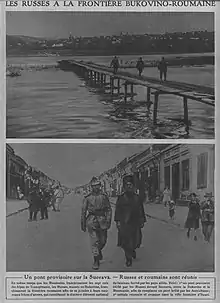 En fait, les hostilités à l'Est avaient, pour la Roumanie, pris le relais de celles à l'Ouest avant même la paix de Bucarest, et dans ces opérations, outre la mission Berthelot (qui avait du officiellement se retirer, mais en fait une partie des officiers français endossèrent l'uniforme roumain)[60], Alexandru Averescu put compter sur l'agent britannique Joseph W. Boyle, officier canadien envoyé par le Comité américain des ingénieurs de Londres, pour aider à réorganiser le système ferroviaire sur le front de l'est. En décembre 1918, il négocia avec le jeune gouvernement bolchevique russe la restitution à la Roumanie de son or et de ses archives, mais échoua sur la question de l'or[N 7]. En février suivant, il négocia en Bessarabie, pour les gouvernements roumain et moldave, un cessez-le-feu sur le Dniestr avec la république soviétique d'Odessa qui, à ce moment, contrôlait le gouvernement de Kherson.