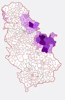 Dans l'ex-Yougoslavie, les 40 000 « Vlaši » vivant en Serbie méridionale et le long de la frontière bulgare (en roumain « Aromânii » : Aroumains), ainsi que les 34 000 « Roumains » de Voïvodine (en roumain « Românii bănăţeni din Serbia »), étaient reconnus et comptés comme minorités nationales (séparément), et figuraient sur les cartes linguistiques, tandis que les 140 000 roumanophones de la Krajina orientale (aux Portes de Fer et autour de Negotin et de Zaječar (en roumain « Românii Timoceni »)[5] n'étaient pas reconnus comme minorité, ne figuraient pas sur les cartes ethnographiques yougoslaves ni dans les statistiques, et n'étaient évoqués que comme « Serbes de langue valaque ».