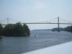 Le pont des Mille-Îles au-dessus du côté nord du fleuve Saint-Laurent, donc du côté de l'Ontario. | ||||||||