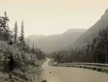 En 1926, à l'occasion de la construction d'une ligne de transmission électrique[10] entre l'Île-Maligne et Limoilou, on refait, par embranchement d'Hébertville, l'ancien chemin de Québec, surnommé « chemin des Poteaux », que suivait à peu près cette ligne électrique. La Shawinigan Water & Power[11] construisait une ligne électrique depuis St-Joseph d'Alma jusqu'à Beaupré, afin d'ériger une longue série de pylônes supportant de nombreux fils transportant, dans les grands centres, l'énergie développée dans les usines hydroélectriques de l'Île-Maligne[12]. Au même moment, surgit le projet d'un lien entre ce chemin et Chicoutimi en passant par Laterrière et la rivière Upika, où la compagnie Price avait un chemin de service.
