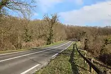 - Saint-Forget : la route traverse un nouveau plateau et croise la route départementale 13 (Chevreuse - La Verrière) avant d'entrer dans le bois de Saint-Benoît et descendre vers la vallée de Chevreuse par les Dix-sept tournants,