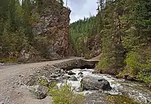 - Porte rouge, endroit où la route traverse des roches riches en mercure[4].
