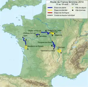 L'édition 2014 part de Mouilleron-en-Pareds en Vendée et passe par les villes de Châteaudun en Eure-et-Loir, Marcigny en Saône-et-Loire ainsi que Chalette sur Loing et Paucourt dans le Loiret.