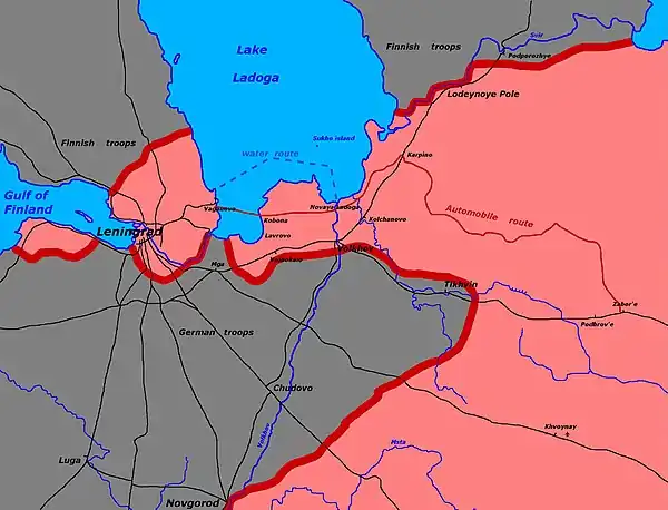 Pendant l'été, Léningrad pouvait être ravitaillée par de petits bateaux et des péniches par le lac Ladoga, mais la navigation était difficile et dangereuse en raison des bombardements et les capacités de transport étaient limitées.