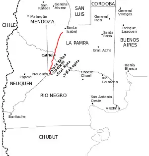 - Département de Puelén : Veinticinco de Mayo (km 150) et Puelén (km 195).