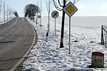 La route nationale 28 à Pleitrange, commune de Contern.