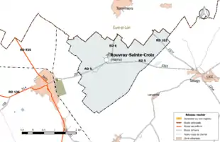 La commune est traversée par deux routes départementales : la RD 5 (2 363 véhicules/jour en 2014), qui relie Patay à Chilleurs-aux-Bois[39] et la RD 6 (785 véhicules/jour), qui relie le centre-bourg de la commune à Chevilly[39]. Complétant ces voies, la commune est sillonnée de plusieurs voies communales et chemins ruraux desservant ses fermes et hameaux et les bourgs environnants.