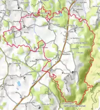 L'occupation des sols de la commune, telle qu'elle ressort de la base de données européenne d’occupation biophysique des sols Corine Land Cover (CLC), est marquée par l'importance des territoires agricoles (60,9 % en 2018), en augmentation par rapport à 1990 (54,9 %). La répartition détaillée en 2018 est la suivante : zones agricoles hétérogènes (53,8 %), forêts (39,2 %), terres arables (6,1 %), prairies (1 %)[11]. L'évolution de l’occupation des sols de la commune et de ses infrastructures peut être observée sur les différentes représentations cartographiques du territoire : la carte de Cassini (XVIIIe siècle), la carte d'état-major (1820-1866) et les cartes ou photos aériennes de l'IGN pour la période actuelle (1950 à aujourd'hui)[Carte 1].