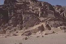 En décembre 1971, Jacqueline Pirenne mentionne un obélisque de pierre (au lieu dit Hajar Abû Zayd) à l’ouest de la ville antique puis reconnait en 1980 un site dénommé Hajar Yahirr[1]. Par la suite, la Mission archéologique française de Shabwa (direction : Jean-François Breton) entreprend le relevé des systèmes d’irrigation de Dhât al-Jar[2], à 5 km à l’est de Hajar Yahirr, étudie les carrières de granit au nord-ouest du site (voir photographie), dresse le plan de la fortification de Hajar Yahirr et collecte de la céramique classée comme « archaïque » (IXe – VIIe siècles avant notre ère).
