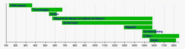 Le moine bouddhiste chinois Faxian, rentrant d'Inde en Chine, fait une escale forcée en 413 à "Ye-po-ti", c'est-à-dire "Yavadvipa", nom que les Indiens donnaient à l'île de Java à l'époque. Ce nom, qui signifie "l'île du millet", est attesté dans l'épopée indienne du Ramayana, écrite entre le IIIe siècle av. J.-C. et le IIIe siècle ap. J.-C. On ne sait dans quel port il a jeté l'ancre et rien n'indique que ce soit Tarumanagara. Ce qui est certain, c'est qu'on ne connaît pas d'autre État organisé à Java pour cette époque.