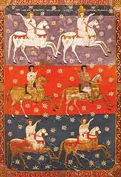 - Détail du tombeau de San Millán (Monastère de Yuso) Sur l'image du haut, le Saint prévient les habitants de la ville de Cantabrie. L'image inférieure représente la conquête de la ville par les troupes wisigothes