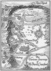 Carte obtenue à partir du scan du roman "Prester John" (1910), écrit par John Buchan et illustré par Henry Clarence Pitz. - Dans « Les Oiseaux de proie » (1997), premier tome de la Saga des Courtney de Wilbur Smith, le royaume du prêtre Jean est l'un des décors du roman[14].