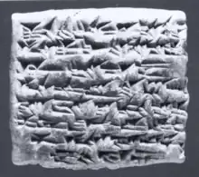 Tablette en albâtre portant une inscription d'Adad-nerari Ier commémorant la restauration du temple d'Ishtar d'Assur[9]. Pergamon Museum.