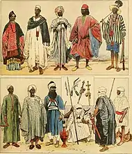 - A l'est, sur le lac Tchad, l'État du Kanem-Bornou, fondé sous le nom de Kanem au IXe siècle, s'impose ensuite dans la région centrale du Sahel. Un peu plus a l'ouest, les cités-États haoussa vaguement unies prennent le dessus. Les deux États coexistaient difficilement, mais restent assez stables.