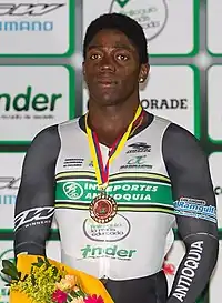 Rubén Murillo sur le podium de la vitesse individuelle des championnats de Colombie de 2013.
