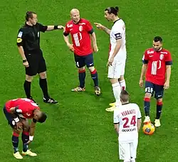 Ruddy Buquet face à Zlatan Ibrahimović lors d'un Lille / PSG en mai 2014.