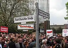 Le , une partie de la Kochstraße de Berlin est officiellement devenue la Rudi Dutschke-Straße, traversée par la Axel Springer-Straße. Cette décision a soulevé une polémique persistante[2].