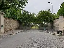 - Au nord, la rue est en impasse entre l'ancien et le nouveau cimetière parisien de Saint-Ouen. Il existait jadis une continuité vers le chemin des Poissonniers au nord du cimetière, lui-même condamné.