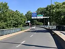 Au-delà de cette passerelle, la rue est une bretelle reliant l’autoroute A 4 et le pont de Charenton[1]. Cette bretelle comporte un étroit trottoir entre la passerelle et un escalier donnant accès au quai des Carrières. Au-delà de cet escalier jusqu’au pont la route est fermée aux piétons.