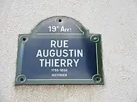 La rue porte le nom de l'historien français Augustin Thierry (1795-1856).