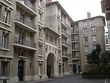 Vue d'ensemble des bâtiments rue Baudin et rue Danton.