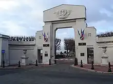 La petite place où se trouve l'entrée principale du cimetière, à l'intersection entre la rue Baudin et la rue Raspail, porte le nom de place du Souvenir Français.