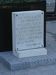 Une stèle célèbre les Taxis de la Marne, réquisitionnés les 6 et 7 septembre 1914 par le général Galliéni, et dont une grande partie provenaient de Levallois-Perret. Grâce à ces taxis qui transportèrent plus de 6 000 hommes, la première bataille de la Marne put être remportée par les troupes françaises.